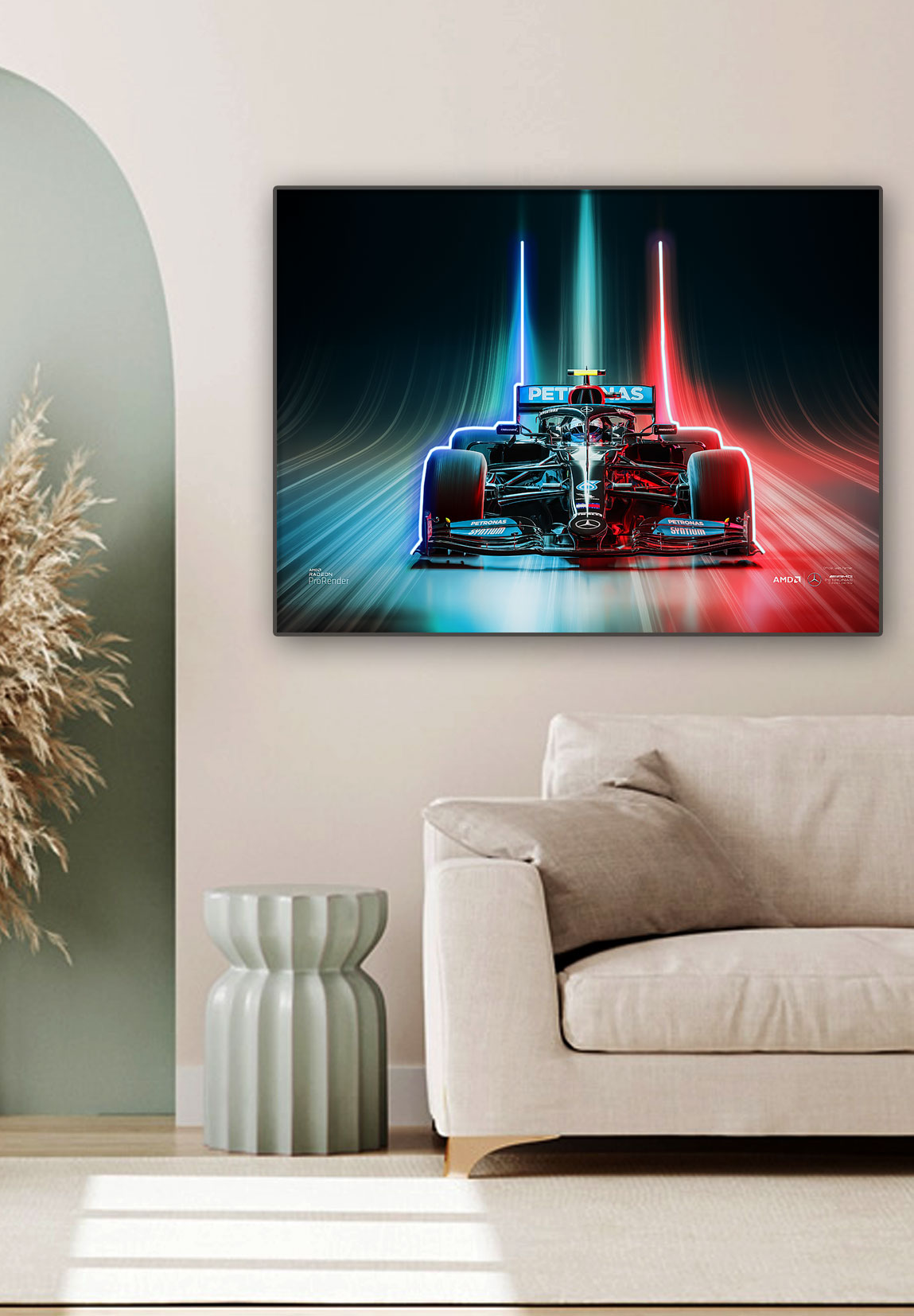 Χειροποίητος Πίνακας Neon Led Mercendes Formula1. Σχεδιασμός για μεγάλη ανθεκτικότητα και με τα ποιοτικότερα υλικά. Διακοσμούμε τον χώρο σας με έναν φουτουριστικό πίνακα που δημιουργεί όμορφες αισθήσεις. Το φως ανάβει με έναν διακόπτη που είναι στο καλώδιο.