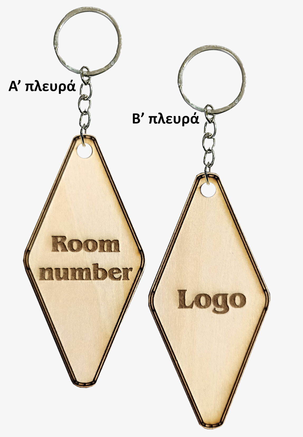 Ξύλινο Μπρελόκ Ξενοδοχείου Βάλε Αριθμό και Logo